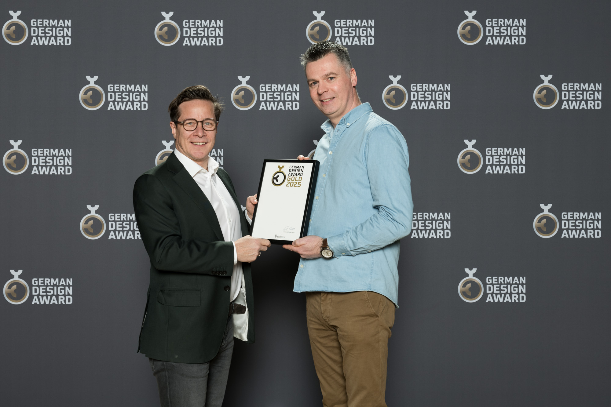 Joris Draelants en Geert Dekens van Harol nemen met trots de German Design Award 2025 in ontvangst.jpg